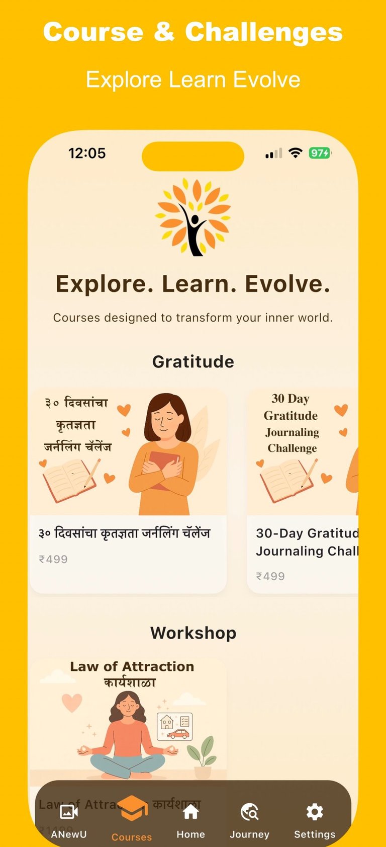 Through simple daily practices, reflections, affirmations, guided audio sessions, and curated video content, curated challenges and courses, AnewMe supports you in creating positive habits and a calmer, more intentional life.